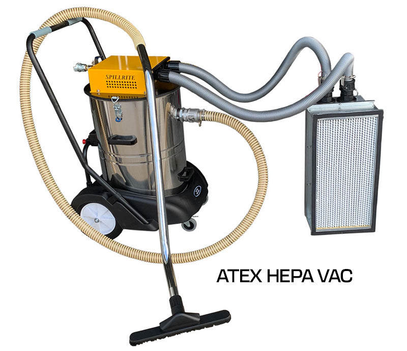 vacuumsSpillrite explosion proof vacuum cleaners are safe for use in hazardous situations for control of combustible dusts and most flammable fluids. Our vacuums do not create any arcing or sparks or generate any heat through normal operation.