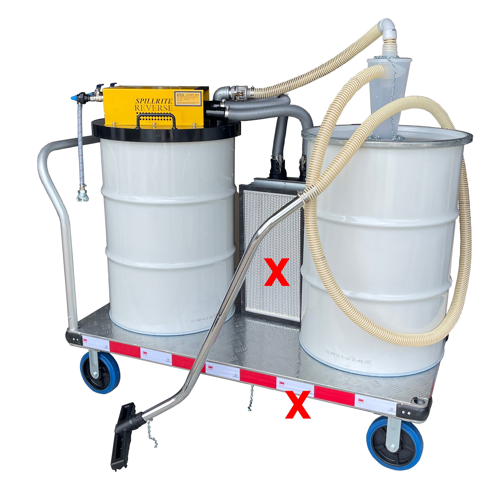 The DTV100RFC/CYC is extremely efficient and the reverse filter cleaning sets it apart from most pneumatic vacuum systems in the market. The unique design that Spillrite incorporates allows reverse flow of compressed air to blast through the filter from the inside out clearing built up dust and blast media from the filter casing allowing the vacuum to breath easy and continue with the awesome power of the triple reverse thruster venturi's.