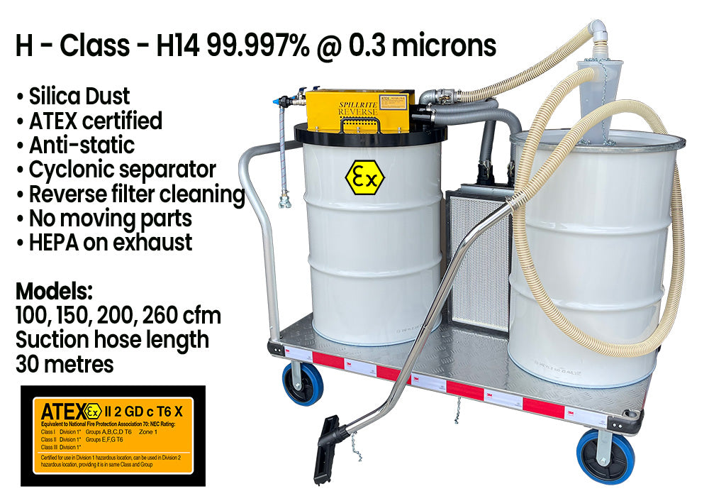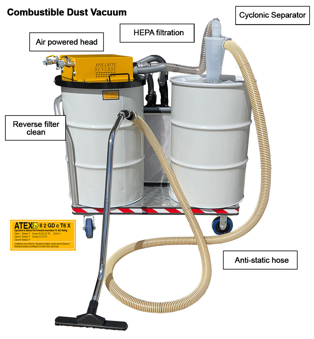 Combustible dust vacuum 180 cfm with HEPA and cyclone - ATEX certified