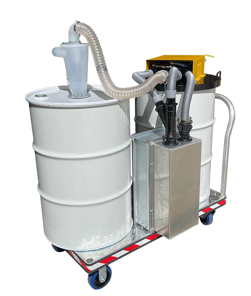 The Spillrite DTV100/SIL/RFC/CYC is a pneumatic drum top vacuum with reverse filter clean and combined with a cyclone to enable fast cleanup and extended run times without the need to constantly clean the filter. This unit has been extensively tested in power stations where they need to clean up fly ash and coal dust which is just nasty and extremely dangerous due to the danger of dust explosion. (Eraring Power station and Millmerran Power station)The DTV100RFC performs extremely well in these circumstances. When it comes to abrasive blast media there is no explosion risk but there is the need for a vacuum unit that can cope with large amounts of dust and still perform.