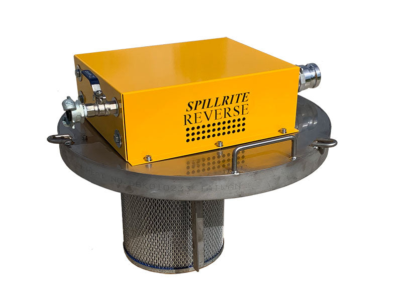 The Spillrite Drum Top Vacuum comes in several models. Reversible and Vacuum Only - Standard and explosion proof. The Stainless Steel Drum Top Vac is strong and rust resistant weighing 19 kgs. The yellow silencer is alloy and the internal components are plastic .