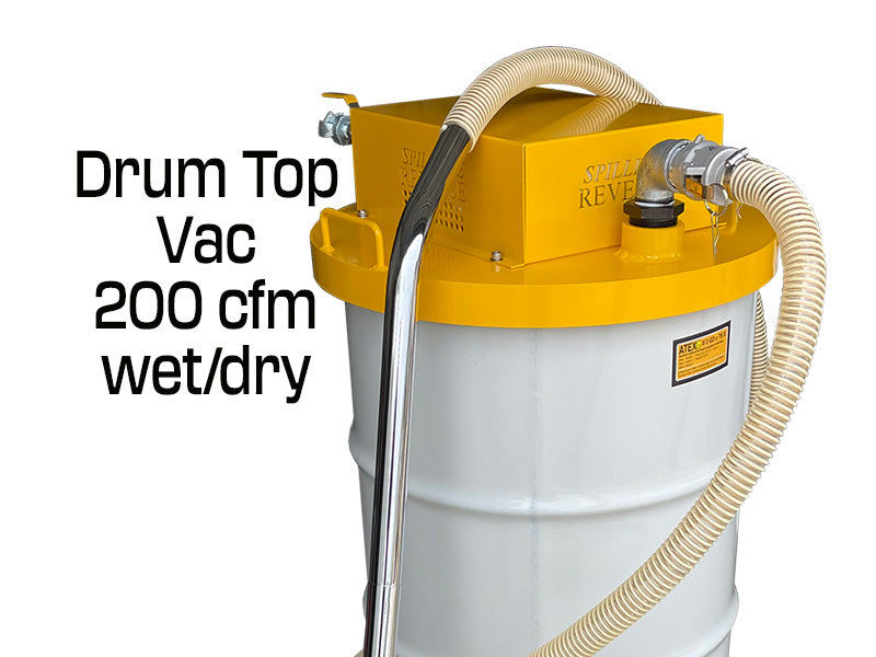 Drum Top Vacuum - Alloy power head & silencer shroud - 200 cfm vacuum only unit The Drum Top vacuum can recovery all wet and dry industrial waste