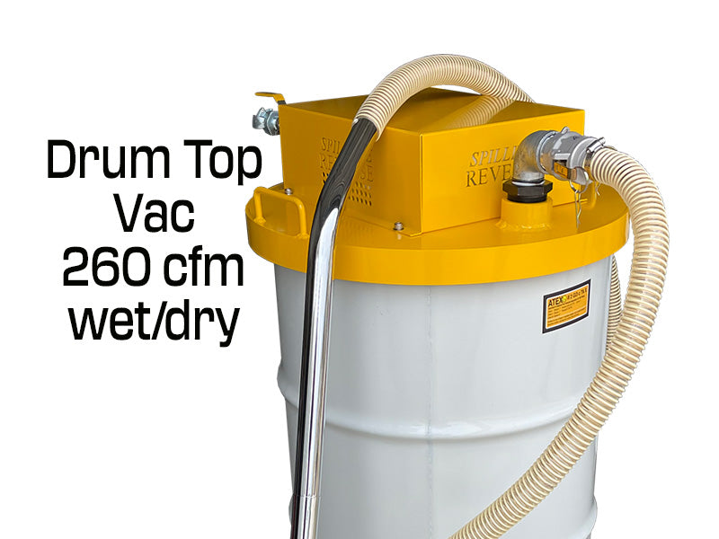 Drum Top Vacuum - Alloy power head & silencer shroud - 260 cfm vacuum only unit The Drum Top vacuum can recovery all wet and dry industrial waste
