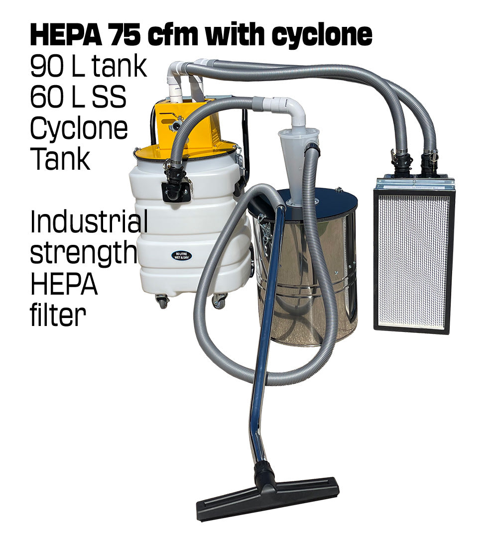 This unit has been extensively tested in power stations where they need to clean up fly ash and coal dust which is just nasty and extremely dangerous due to the danger of dust explosion. (Eraring Power station and Millmerran Power station)The P90L/60/CYC/HEPA performs extremely well in these circumstances.